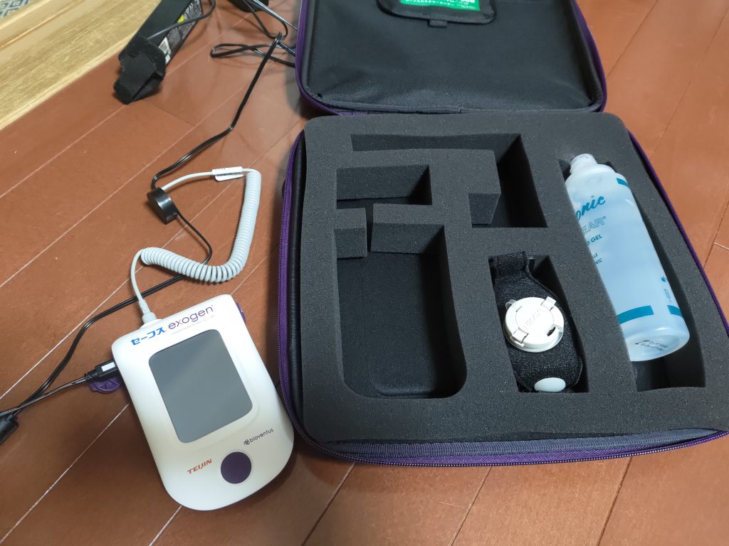 入院中に帝人の担当者が説明に来たので、帝人のロゴが入っていますね。作った会社は違うみたいですが。左にあるのが本体です。その他の付属品は、こんな感じ。