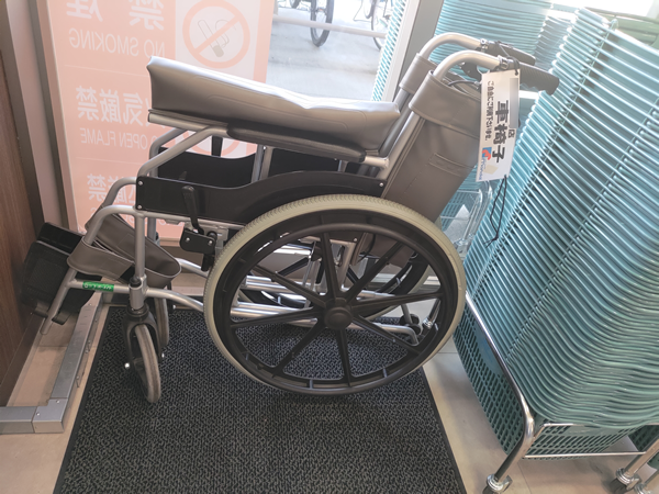スーパーに行った時には松葉杖での移動を覚悟していたんですが、なんと自由に使える車椅子があるではないですか!これまで全く意識したことがなかったことですが、これは有難かったです。ただ、無料貸し出しの車椅子なのでちょっとボロいのか、左の車輪の動きが悪くてまっすぐに進んでいるはずなのに左に曲がりがちでした。それでもないより100倍マシなので、ずいぶん助かりました。